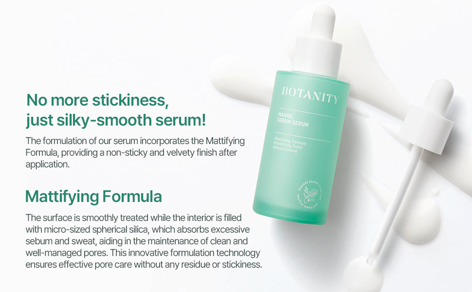 The silky, non-greasy texture layers effortlessly under moisturizers or makeup, making it ideal for daily use in both morning and evening routines. With consistent use, Botanity Makiol Sebum Serum helps minimize shine, support skin clarity, and maintain a healthy-looking balance—perfect for those seeking calm, controlled hydration with a lightweight feel.